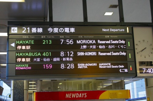 8月21日日曜日 8時12分発 新青森行き はやぶさに乗車 |