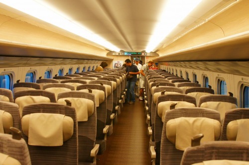 普通車の車内 内装は東海道新幹線N700系に較べると やや安っぽい感じ? |