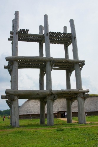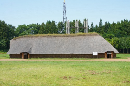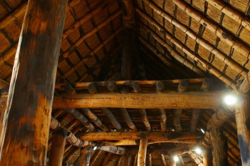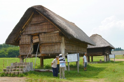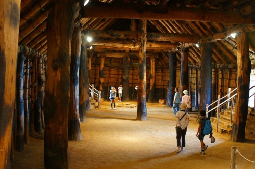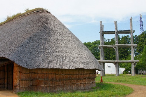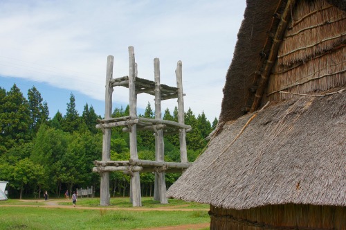 右側のやぐらはかなり高いもので柱の太さも半端 ではありません、 今から4千年前に日本人もたいしたものです。 |