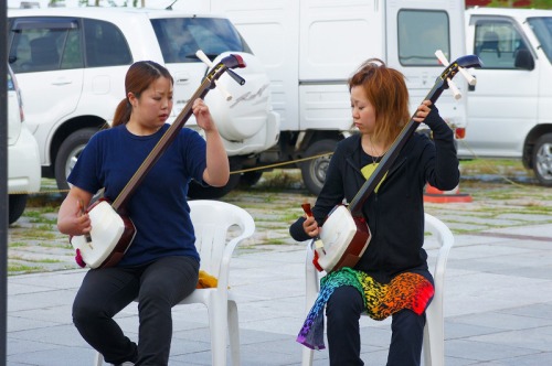 八甲田丸から出てきたら、若い女性の 津軽三味線が聴けました。 |