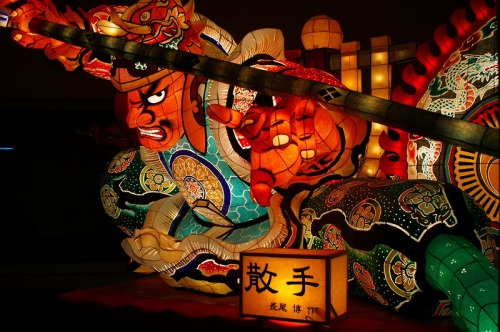 この辰巳館では町の祭りに繰り出すネブタを 保管する倉庫が中庭にあり、 毎晩8時半から中庭に引き出して宿泊者たちを 歓迎してくれるそうです。 |