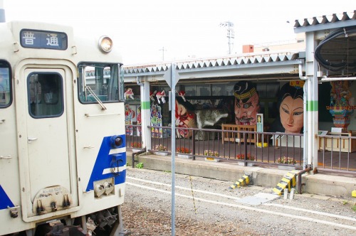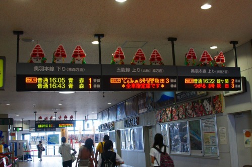五所川原といえば、太宰治ですね。 この駅から金木駅まで津軽鉄道で20分ほどで着きます。 金木は太宰のふるさとです、生家は今では斜陽館という名で記念館として残されています。 |