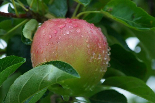 最盛期には沢山の観光客がやってくるそうですが、この日は平日の雨模様朝も9時と言うことで観光客は我々のほか1組だけでした。 ここでは孫が青りんごのもぎ取りを体験してきましたよ。 これなんかはもう食べられそうでしたが。 |