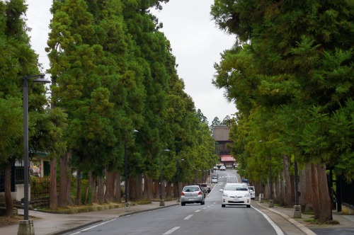 禅林街入口より真っ直ぐ進むと、杉並木のある通りの両側に、いくつもの寺院が連なっている。 |
