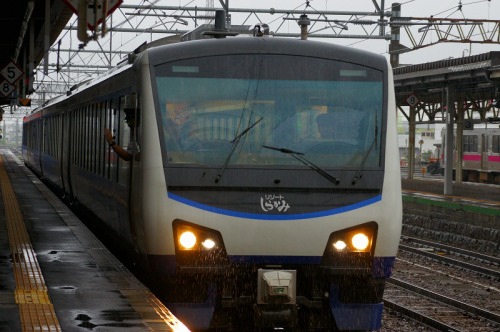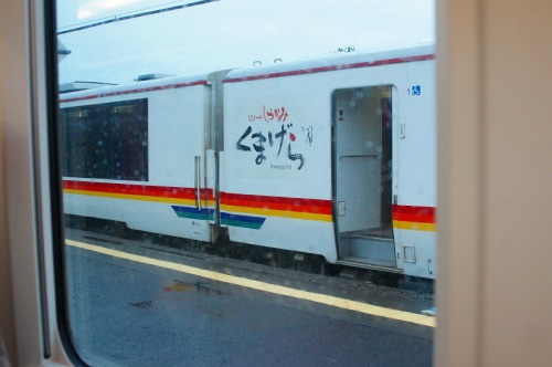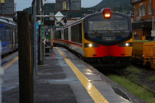 深浦駅でくまげら編成と待ち合わせでした。 なにぶん単線ですので、又この日はご豪雨の影響で電車が随分遅れました。 |