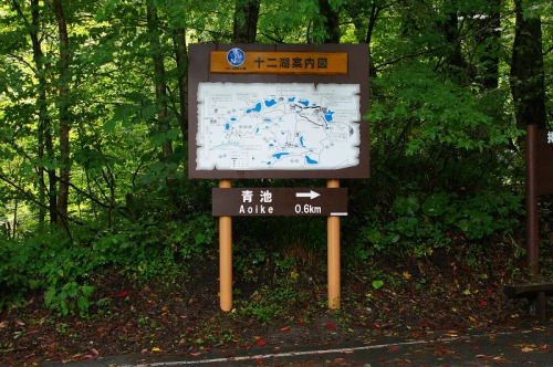 300年前の大地震で33の池ができました。 33の池のうち大崩と言うところから 12の池が展望できるそうです。 そのため、このエリアを十二湖と呼ぶようになったそうです。 |