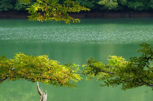 池のエメラルドグリーンと木々の緑がとても綺麗でした。 |