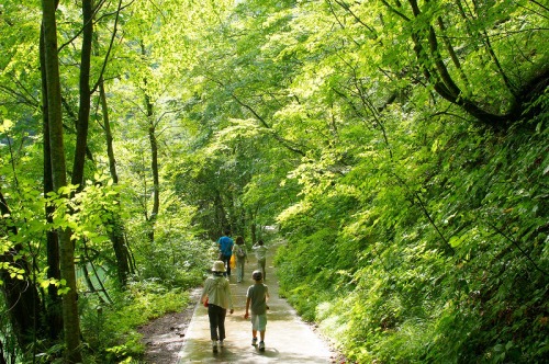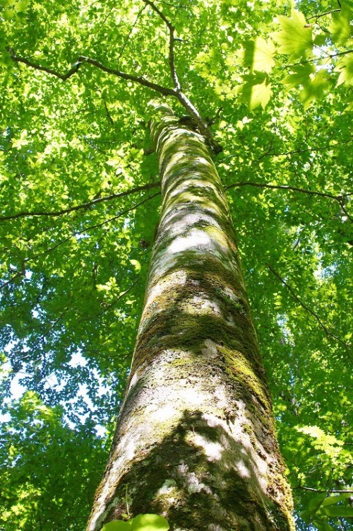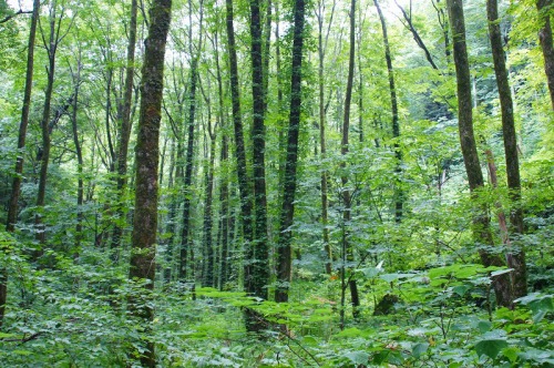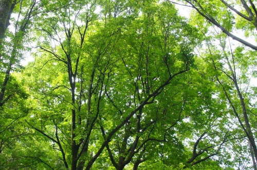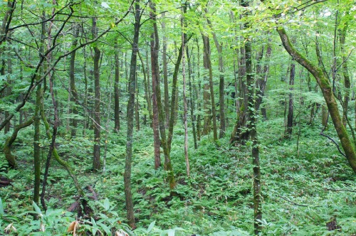 枝を伸ばし葉をつけてブナ林を歩くときは 本当に夏でも涼しいですよ。 |