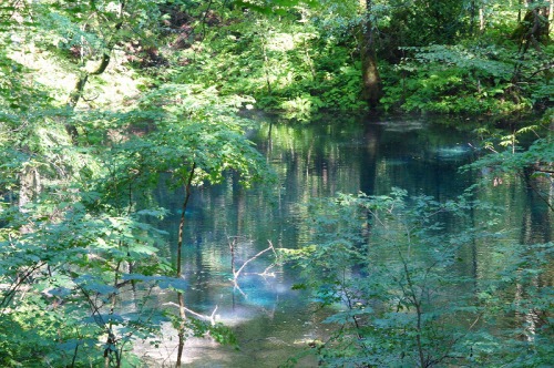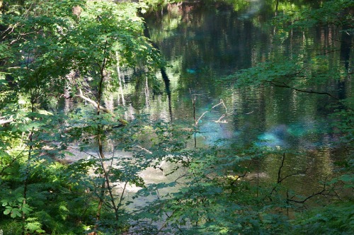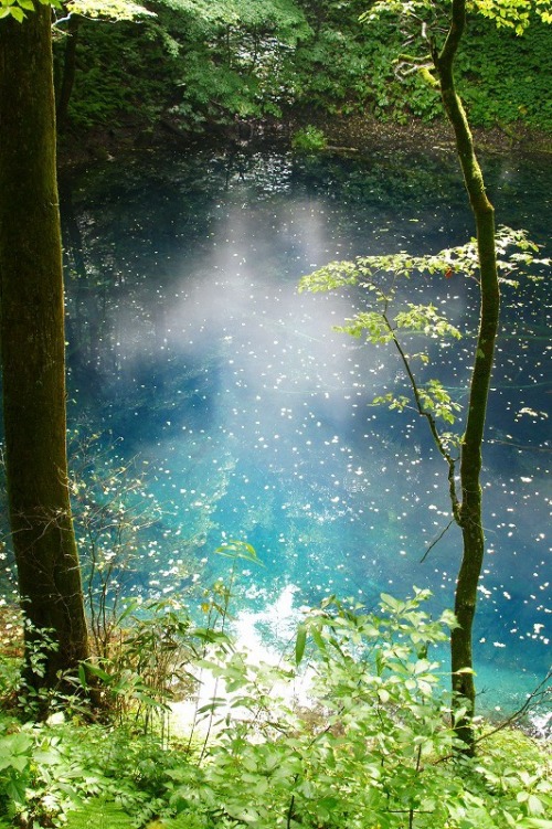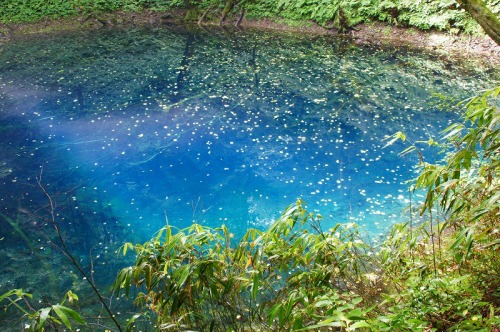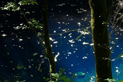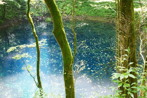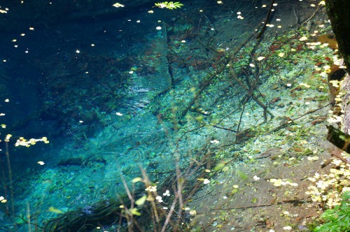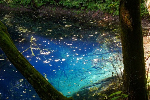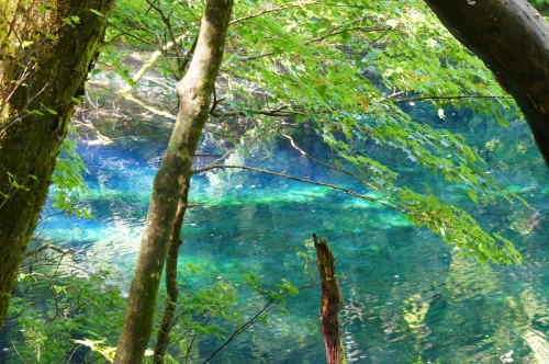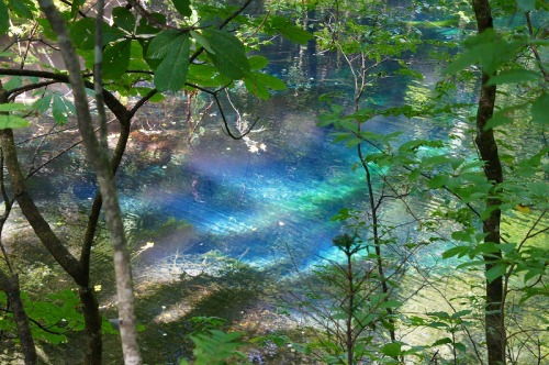 ちょうど太陽の光が池を照らしていて 何とも言えない透明なブルーが神秘的です。 |
