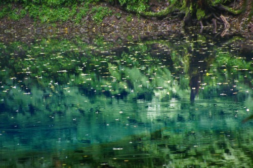 一段とブルーが綺麗ですね、 このショットは東京へ帰る26日午前中もう一度 青池を訪れたときの撮影です。 |
