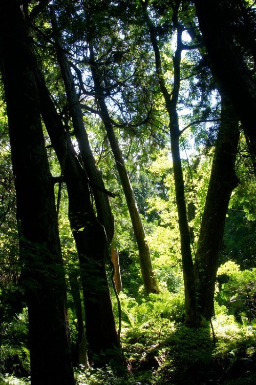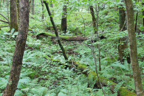年間を通じて雨量が多いのでしょう、林は湿気が 多くシダなど多く生育してます。 |