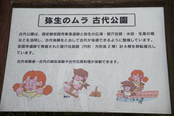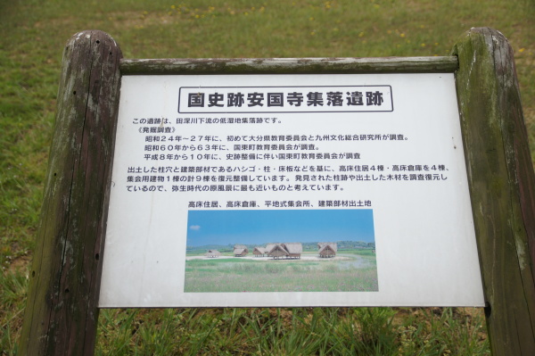 | 国東市国東町の田深川下流部の南岸に位置する“弥生のムラ安国寺集落遺跡公園”。 平成4年には国指定史跡となり、平成10年に体験学習館ができ、平成13年3月に全体が完成したものです。 今から約1800年前の弥生時代の居住体験や稲作体験、発掘体験、弥生時代の暮らしなど、さまざまな体験ができる体験型史跡公園である。 |