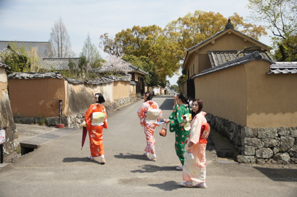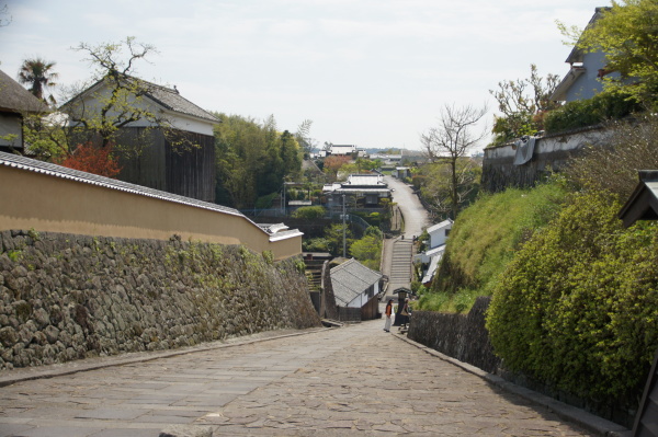 | 城から北に1キロ弱いったところに北台武家屋敷があり、途中に“勘定場の坂”があります。 ここが杵築一番の観光名所となっている場所です。 そこから南には“南台武家屋敷”、少し離れて寺町などがあります。この杵築には消えかけた日本の城下町の面影がよく残っています。 | |