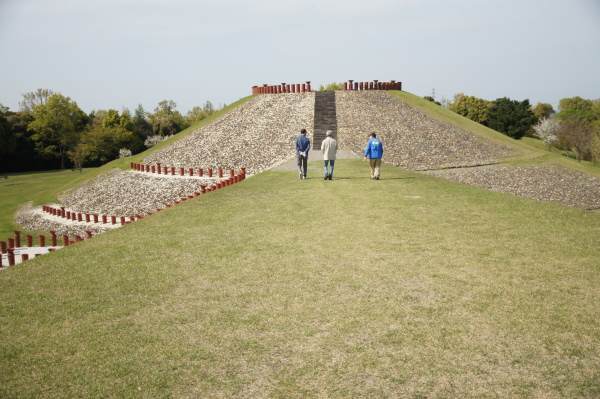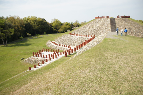 | 墳丘の葺石は築造当時の物を一部に使用して復元されている。 | |