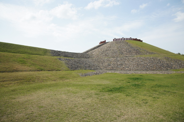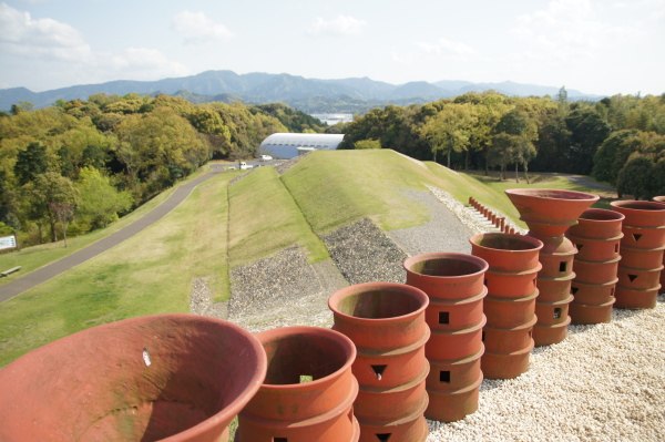 長さ143m、高さ12.7mの3号墳は古墳時代前期では九州最大の前方後円墳。さらに、実際に立ち入ることができる古墳の中では古墳時代全時期を通して九州最大のものです。 |