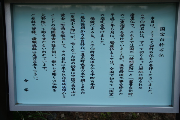 | 制作年代は、平安後期を下らないと言われています。崩壊破損が甚だしかったのですが、修復工事(S33~)により平成5年8月25日には中尊大日如来の仏頭が復位され、昔日の荘厳な姿に復旧しました。 | |