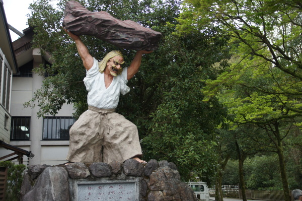 天岩戸神楽30番戸取(手力男命が岩の戸を取り払い給う舞)の像です