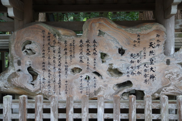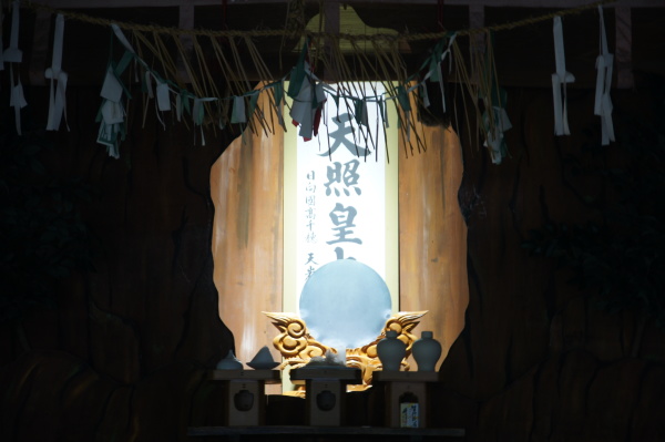 | 東本宮 天照皇大神(あまてらすすめおおみかみ)=天照大神の別名で皇祖神であることを示す名。かつてイザナギノミコト・イザナミノミコトを祀っていたとする史料もある 東本宮は「氏神社」であった。 東本宮はかつて「天磐戸大神宮」とも呼ばれ、この名は今でも西本宮社務所で授与される神札の銘「天岩戸大神宮」に残り、また地元年配者を中心に通称として用いられている。 |