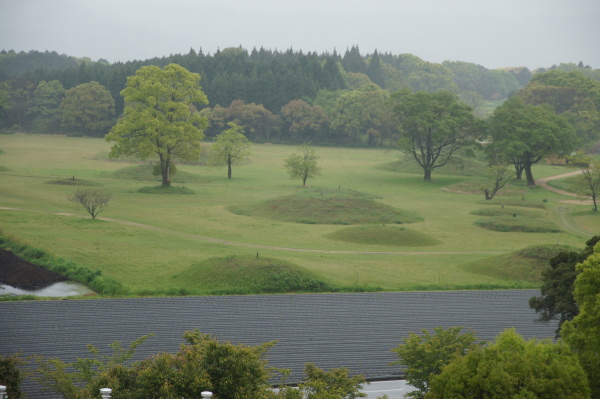 | 宮崎県立西都原考古博物館 西原古墳群は前方後円墳31基、円墳279基、方墳1基、地下式横穴墓11基、横穴墓12基もの多くの古墳が集まっている全国的にも非常にまれな古墳群です。現在までの発掘調査によって、古墳は4~7世紀前半にかけて作られたものだと思われます。 |