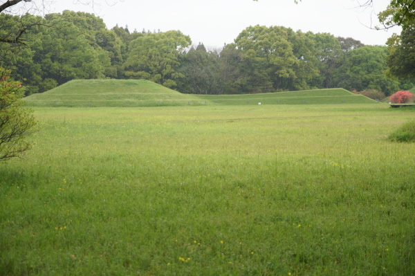 | 女狭穂塚は九州では珍しいくびれ部に造出(つくりだし)を持つ九州最大の畿内式前方後円墳、男狭穂塚は全国最大の帆立貝形前方後円墳です。 明治28年、宮内庁により御陵墓参考地に指定されました。 | |