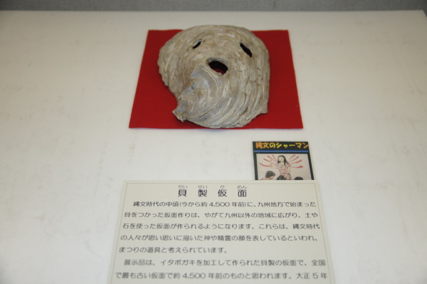 | 塚原古墳群にある熊本市立歴史民俗資料館 縄文時代 貝で制作された仮面 |