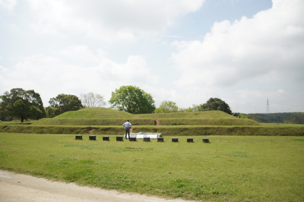 | 古墳の周りには、短甲を着けた武人の石人が配置されている。 | |