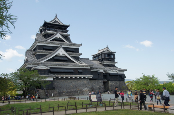 | 熊本城 別名「銀杏城(ぎんなんじょう)」。 この日の夜、熊本地震で石垣が破壊され 大天守、小天守の瓦が落下 |