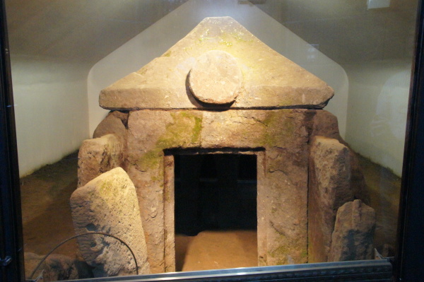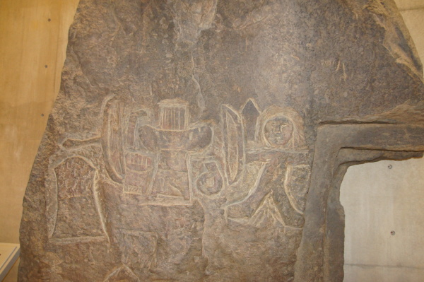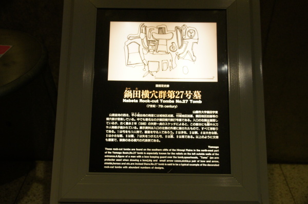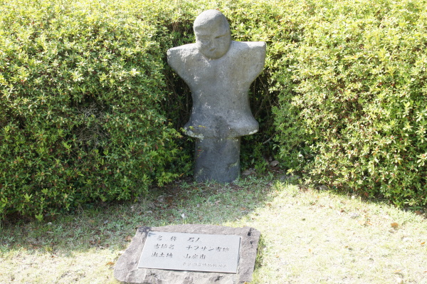 | これは外にあるレプリカ 円形の目玉みたいな丸がお乳に見えるのでチブサン古墳と名づけられたたそうです 。 |