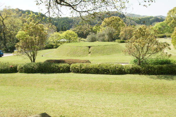 | 男狭穂塚 男狭穂塚(おさほづか)は、宮崎県西都市にある帆立貝形古墳。西都原古墳群に属し、帆立貝形古墳では日本最大の古墳である。 大きさは、全長約175メートル、後円部直径約132メートル、後円部高さ約18メートルで、日本最大の帆立貝形古墳である。墳丘は三段築成で造られており、周囲には幅約20メートルの内側は深く外側が浅い2重の周濠がある。築造方法などから、およそ5世紀前半中頃に造られたと推定されている。 |