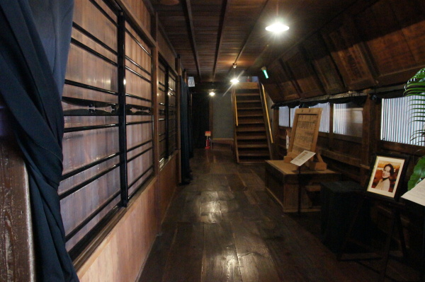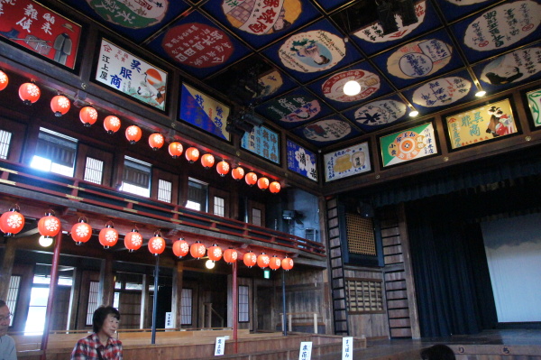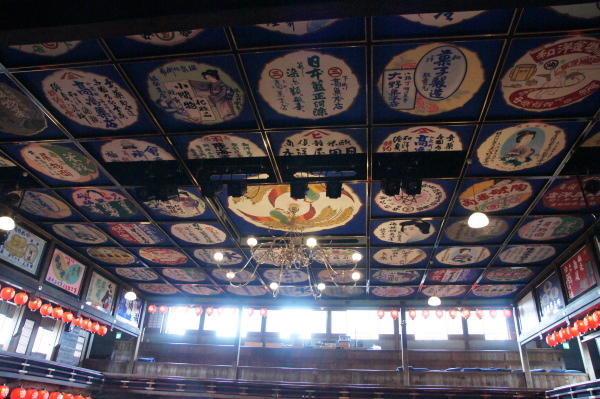 | 天井には明治の建築当時に建設費を負担した商家の広告 | |