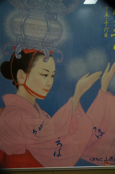 | 山鹿灯篭祭のポスター 大宮神社の祭礼8月15,16日におっこなわれるそうですが、宿はすでに満員です。 |