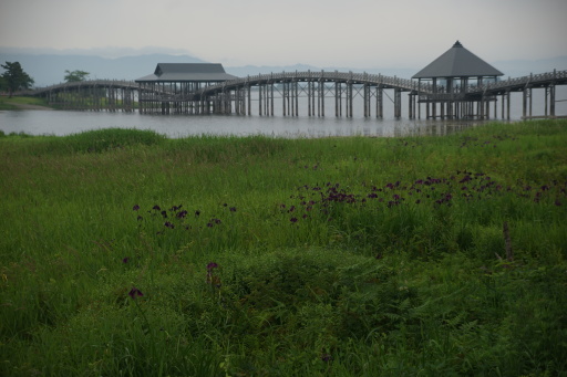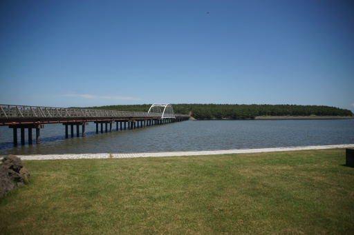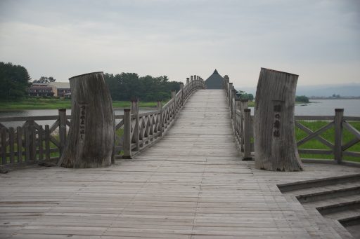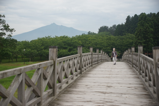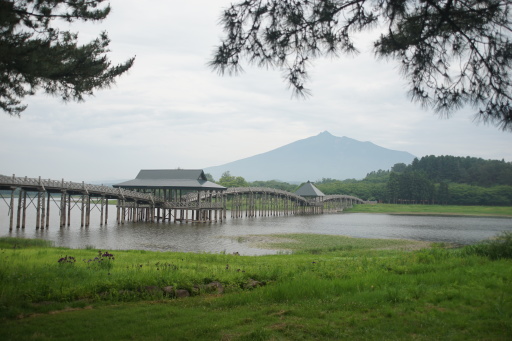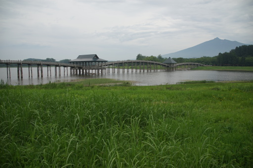 平成6年岩木山の雄大な 山影を湖面に美しく映す津軽富士見湖に、日本一長い三連太鼓橋「鶴の舞橋」として架けられた。。