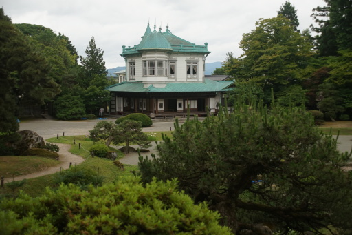 盛美館は、庭園を鑑賞するために建てられた和洋折衷洋式の建物で、明治42年に完成されました。 |