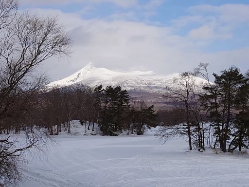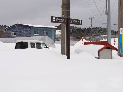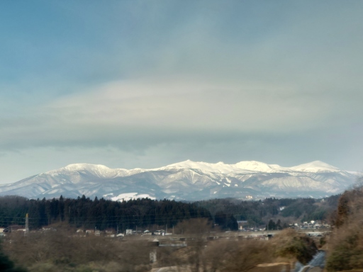 雪の蔵王連山を通過中。 |