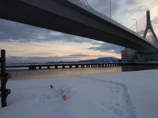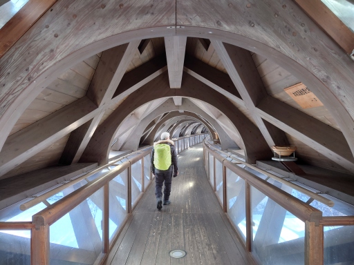 屋根付きの馬淵川をわたる橋を渡って御所野縄文博物館へ行きます。