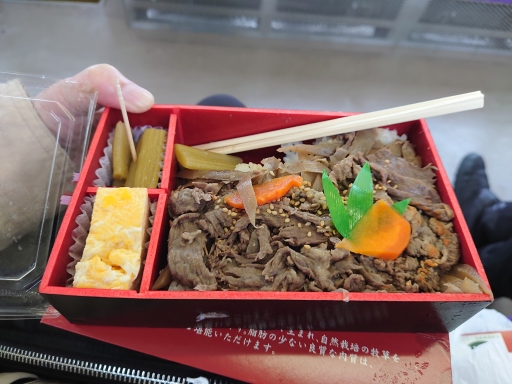 牛肉がたっぷり乗ったコスパの良い駅弁でした。