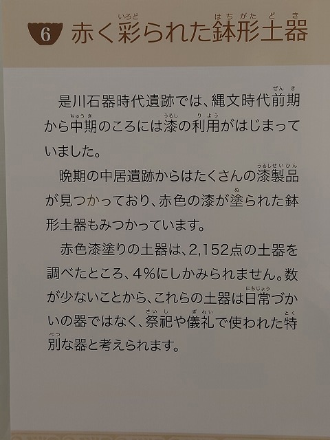 是川石器時代遺跡では、縄文時代前期から中期のころには漆の利用が始まっていました。