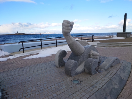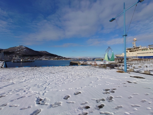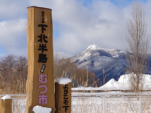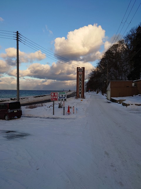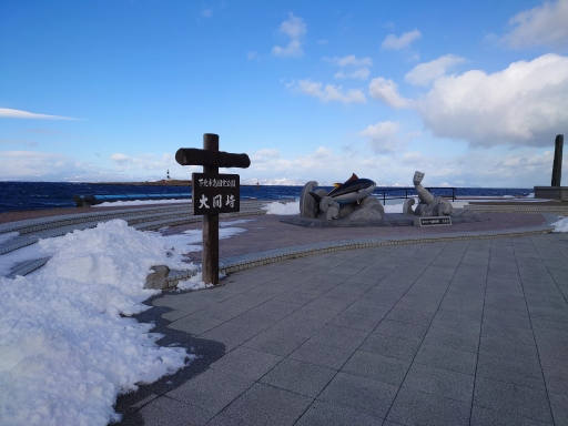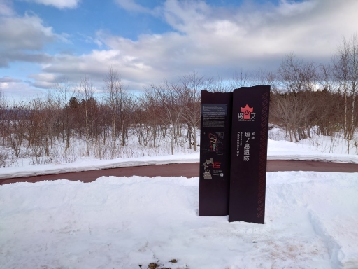 入口のモニュメントにはツララが垂れ下がていた、いかにも寒そうですね。 |