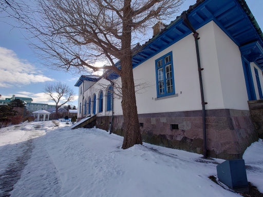 この建物は北海道の代表的な明治洋風建築物で、左右対称形になっており、2階には