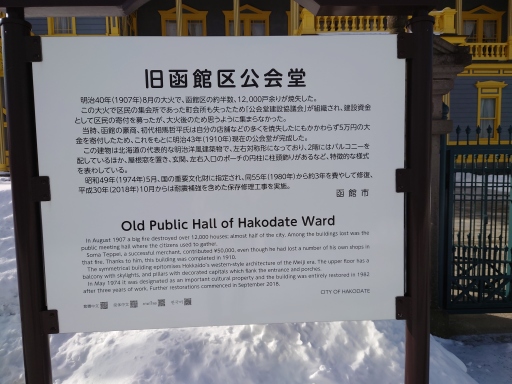 明治43年(1920年)函館の豪商相馬哲平が5面円を寄付して、焼失した公会堂の