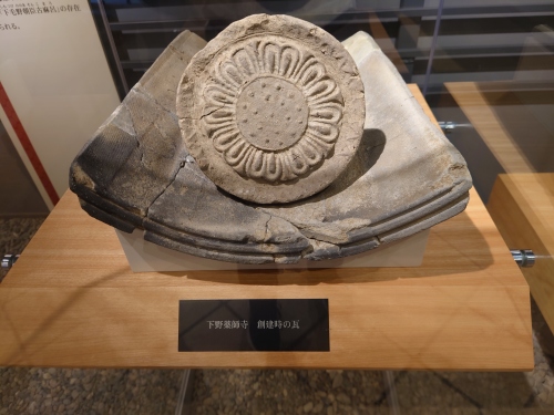 | 下野薬師寺の創建期の鬼瓦 大和国川原寺っと同系の文様であることから寺の創建が7世紀末頃であることがわかる。 | |