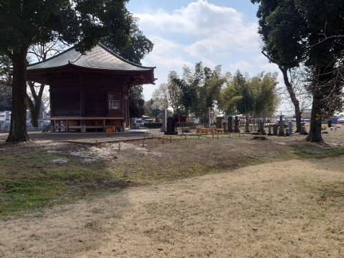| 戒壇の伝承地に幕末頃に建立された六角形のお堂、火葬に西基壇跡がある。 | |