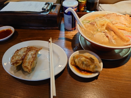 | 二日目は鬼怒川温泉から宇都宮市内にある栃木県立博物館を見学後昼食タイムこだわりの自家製麺。焼き豚。煮豚。一つ一つの素材を手仕事で丁寧に仕上げています。もちもちジューシーな弥惣吉餃子も見逃せない。 | |