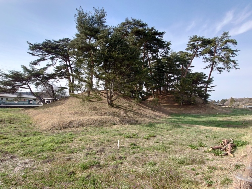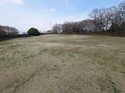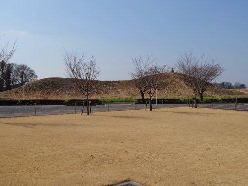 | 古墳の樹木は伐採されて前方後円墳の形がよくわかる・ | |