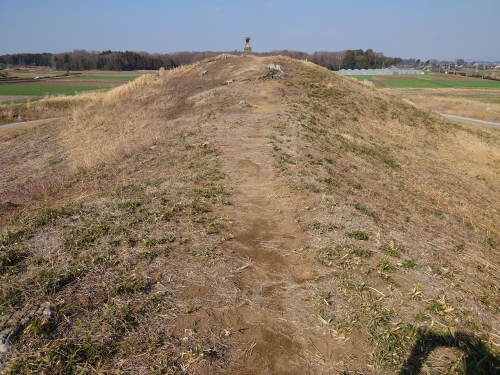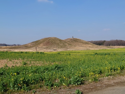 | これは琵琶塚古墳6世紀前半に作られた栃木県最大級の前方後円墳、墳丘長124.8メートル 前方部2段後円部は3段に土が盛られている。 | |
