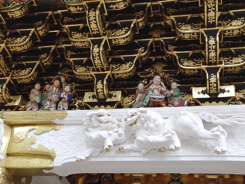 | 大猷院 拝殿拝殿・相の間・本殿の中内部では絵師の狩野探幽が描いた唐獅子や、家光公が実際に着用した鎧などが飾られていました。狩野探幽は、日光東照宮の想像の象をデザインした人物としても有名で、国宝の陽明門をデザインしたのも狩野探幽です。この後、日光神橋の近くにある羊羹の老舗三ツ山羊羹店で水ようかんをお土産に買って帰途につきました。旅の終わりに宇都宮でレンタカーを返却して宇都宮名物の餃子と中華の居魚屋で恒例の一杯やってから新幹線に乗車して帰宅の途につきました。 |