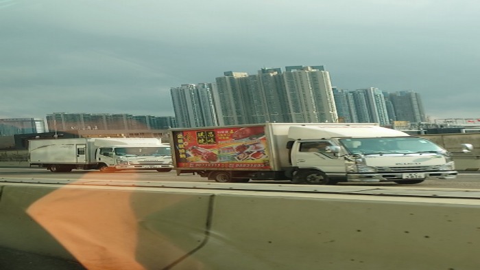 | 空港からはエアポートエキスプレスと4人乗れば料金があまり変わらないのでタクシーで 香港島コーズウェイベイにあるホテルまで行くことにしました 途中高速道路から見る林立する高層マンション群 |