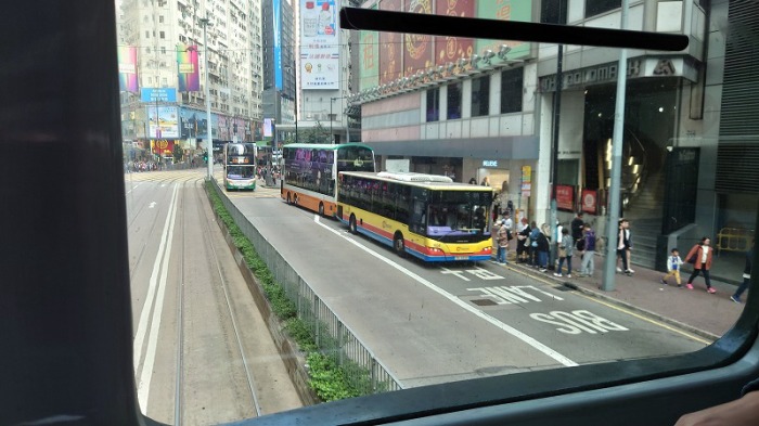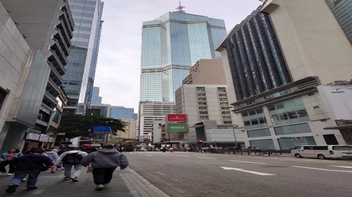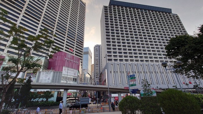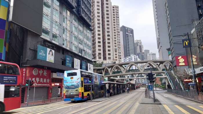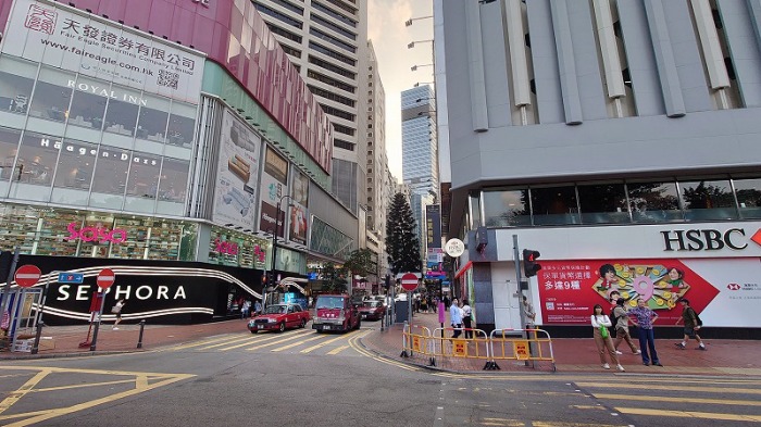 コーズウェイ・ベイの街中右の建物は宿泊したホテル |