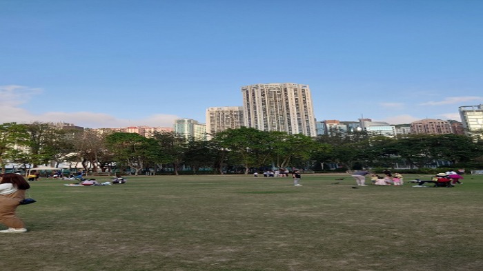 ホテルの前面にビクトリアパーク 公園では子連れの人達が楽しんでいました |