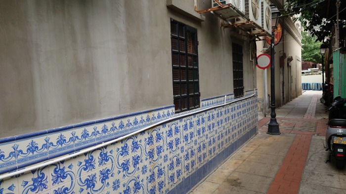 | 裏道に入ると壁にタイルを張ったポルトガル風の古い家並みが残っています | ![]() |